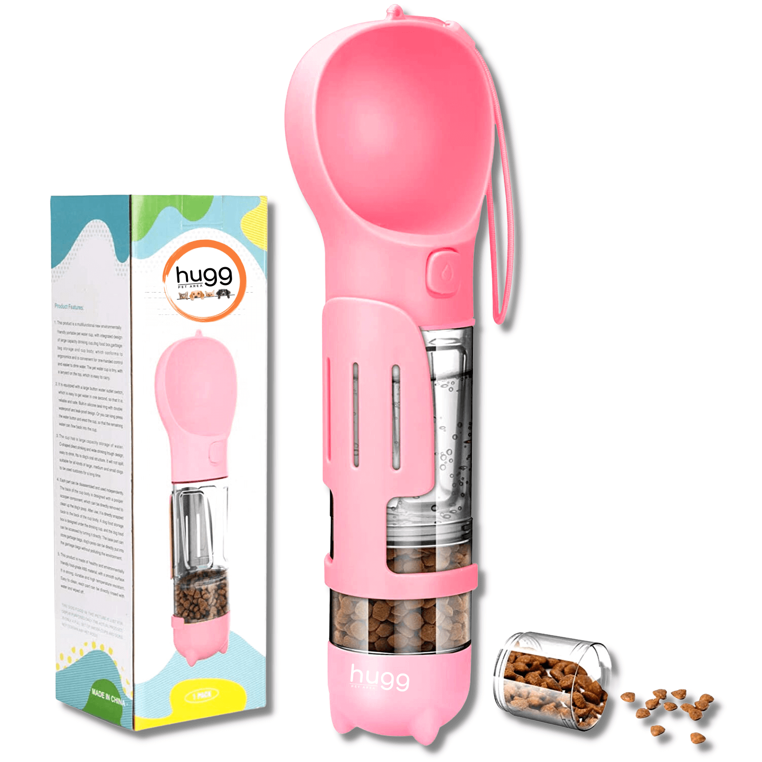 Sticla Apa Portabila 3-in-1, HUGG®, 500ML, pentru Apa, Mancare si Saci Igienici, Roz